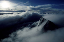 The granite peaks are constantly veiled in wisps of clouds which sometimes resemble a graceful woman peeping coyly from behind the veil. At times during a clear day, the summit reveals a distinct glacier carved pinnacles, rising from the smooth granite dome, exuberating tranquility and peacefulness.